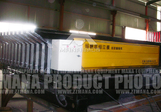 瑪納公司已研制開發(fā)出兩大系列成組立模生產(chǎn)設(shè)備,即機(jī)動(dòng)式成組立模和機(jī)械成組立模機(jī)組,成組立模技術(shù)的應(yīng)用范圍也由制造輕混凝土隔墻板發(fā)展為制造普通混凝土隔墻板和各種構(gòu)造型式的復(fù)合墻板。機(jī)動(dòng)式成組立模與拆裝式成組立模相比有了本質(zhì)的飛躍,采用了自動(dòng)開合模、自動(dòng)控溫加熱、長(zhǎng)度與厚度可調(diào)、多模腔連續(xù)張網(wǎng)、導(dǎo)向穿拔芯管等項(xiàng)技術(shù)。依靠設(shè)備本身的技術(shù)特點(diǎn)和與之配套的有效工藝措施,使墻板的各項(xiàng)技術(shù)性能大為提高。用于制造輕混凝土類圓形孔洞空心隔墻板。