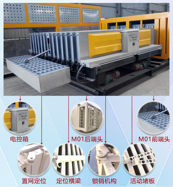 M01隔墻板生產(chǎn)線系我公司第一條成組立模生產(chǎn)線,自成組立模研制成功20多年來,其投資小,見效快,操作快捷方便,性能可靠等特點(diǎn)深受客戶信賴。市場(chǎng)占有率已達(dá)到80%。